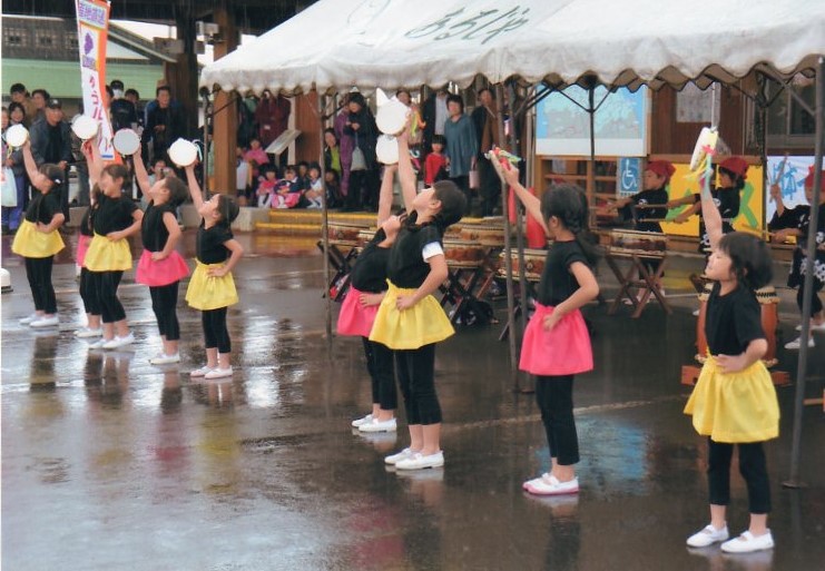 鶴田町の平成25年スチューベン出発式にひなづる幼稚園の和太鼓を披露しました。