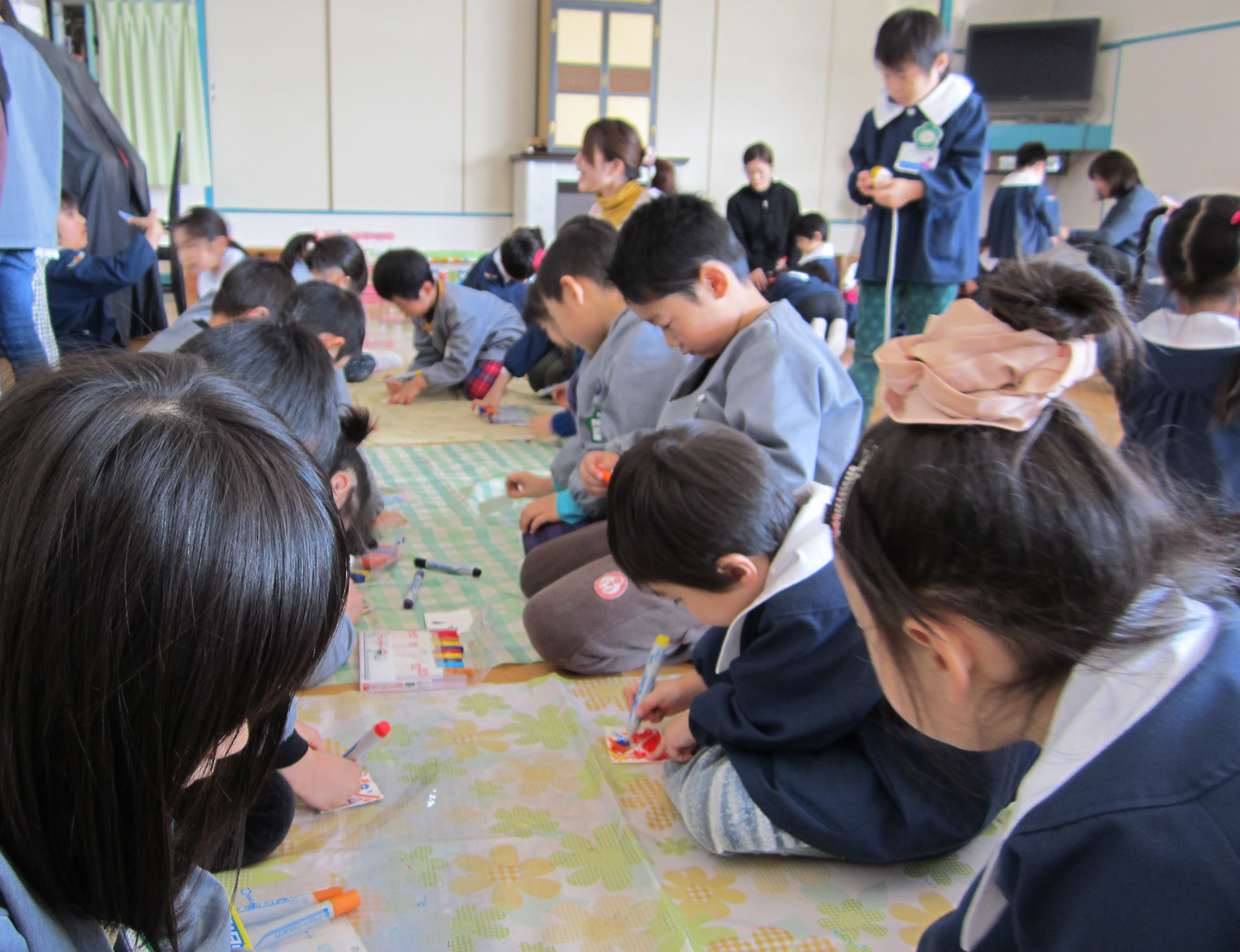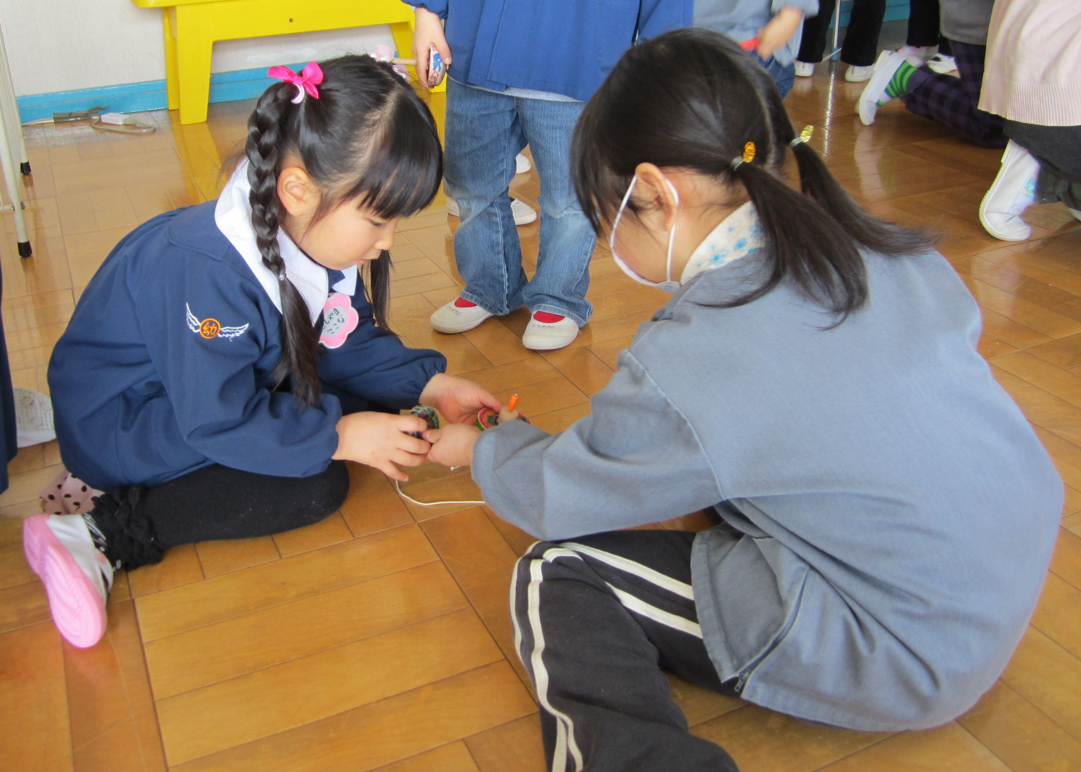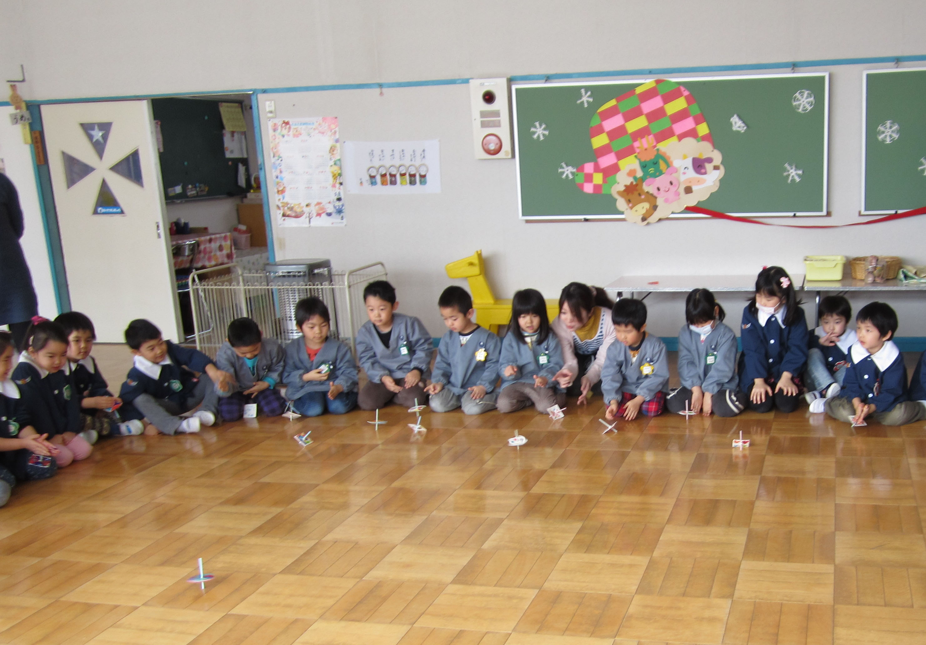 みんなコマ作りに夢中です さあみんなで回してみよう!