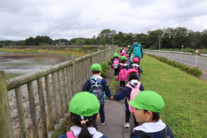 雨が降りそうなので、「鶴の舞橋」を渡って、園でお弁当を食べました。